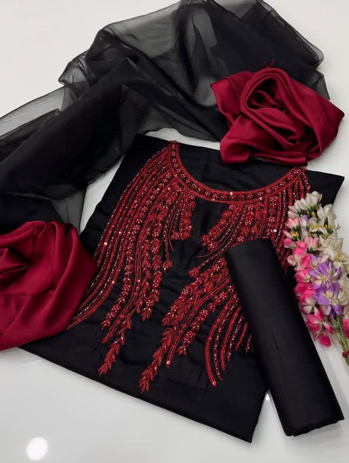 ✔ Heavy Embroidery with Rasham & Beads Work on Gala