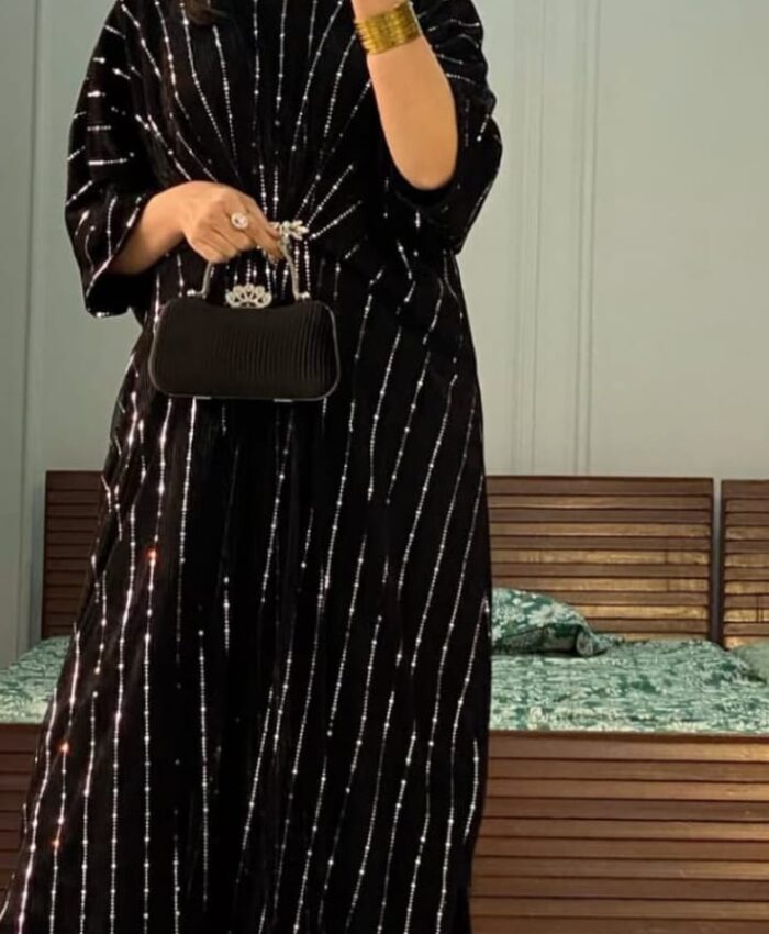 AknasClothing – Elegant Collection | Platted Black Maxi with White Sleeves